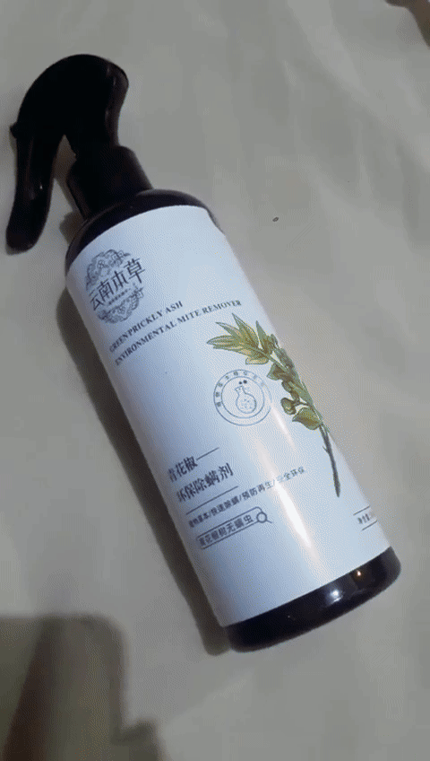 Breathe easy with the **Chinese Herbal Mite Removal Spray** — a 100% natural, plant-derived formula made from **camphor lemon, lemongrass, and green pepper extracts**.